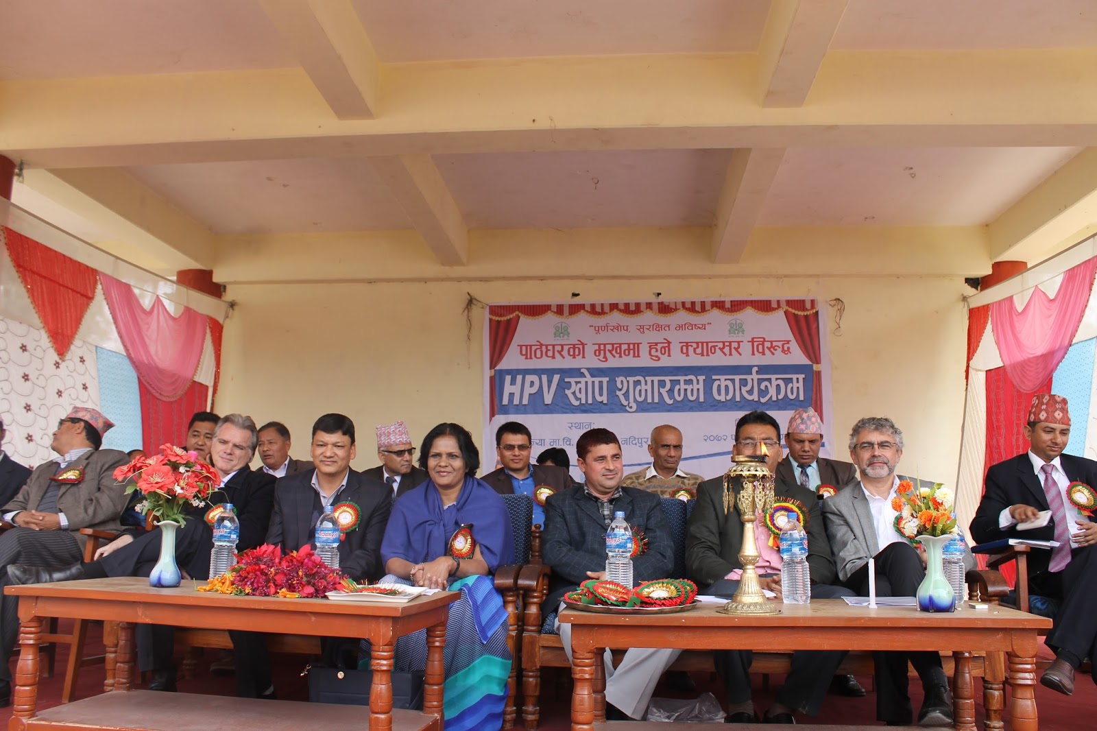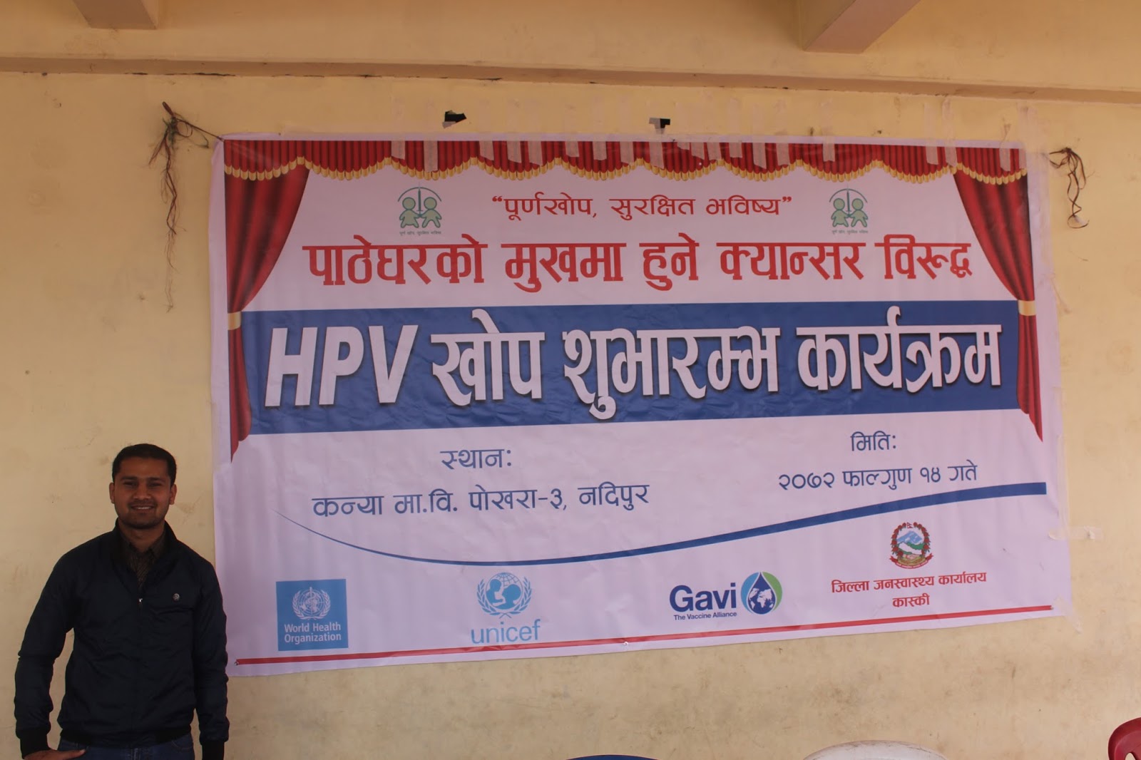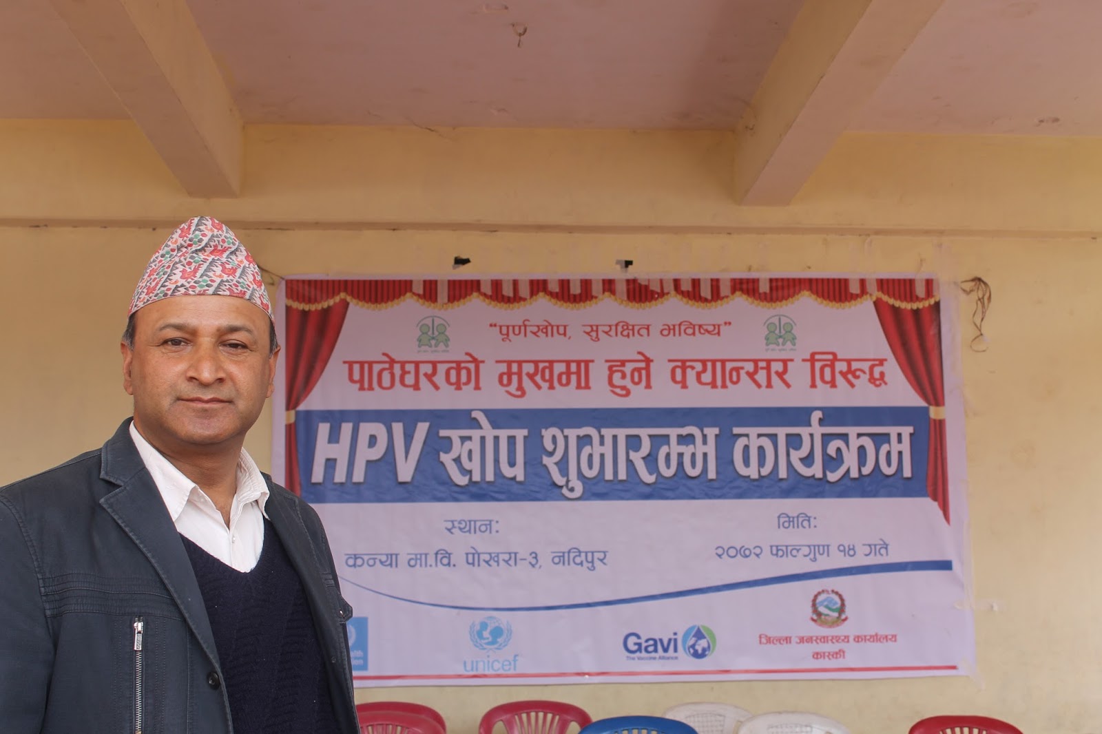 HPV Vaccination program as the latest pilot project (covering Chitwan and Kaski district) to prevent cervical cancer has begun here today from Pokhara, Kaski. This has become possible due to the joint initiative of Child Health Division and Family Health Division under Department of Health Services. Mr. Shanta Bahadur Shrestha, Secretary from MoH formally inaugurated the program today from Kanya Secondary School, Nadipur, Pokhara. Meanwhile, Director General of DoHS Dr. Pushpa Chaudhary handed over the vaccine carrier with HPV vaccine to health worker for starting the campaign. Preshila Paija, 10 year girl studying in class six at the school was the first one to receive first HPV Vaccine in Nepal. This vaccine completes in two doses administered at the interval of six months. The program has targeted to immunize nearly 15,000 school girls studying in Grade VI or non-school girls of age 10 years from Chitwan and Kaski district.