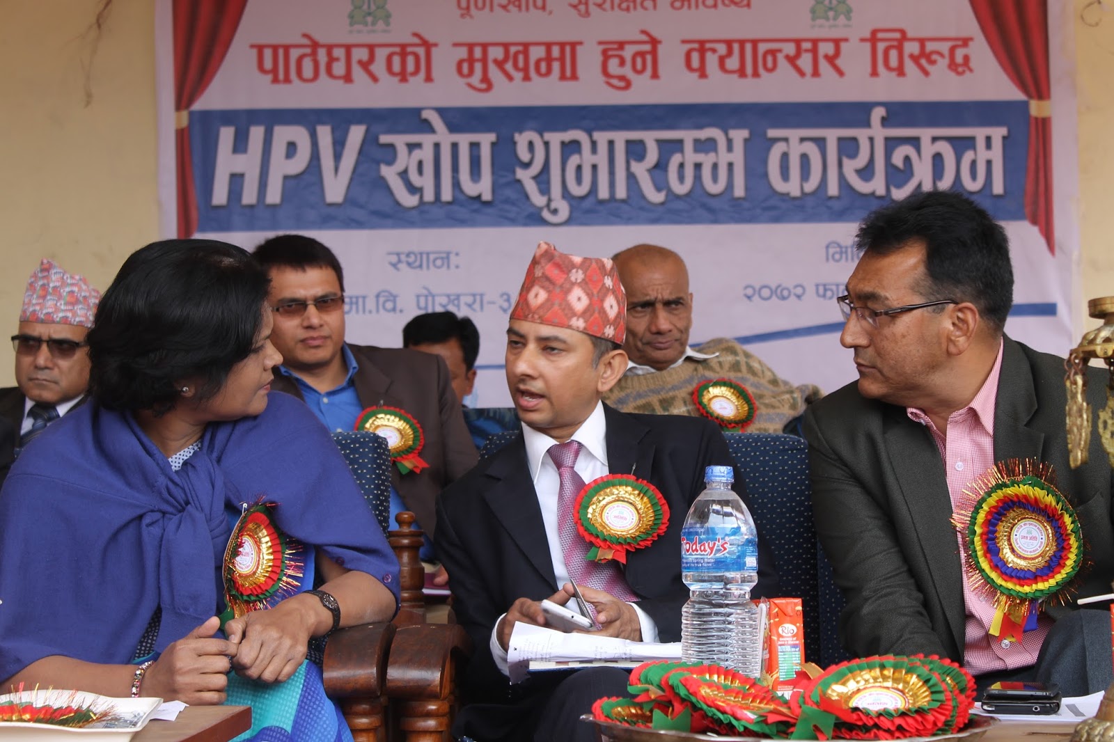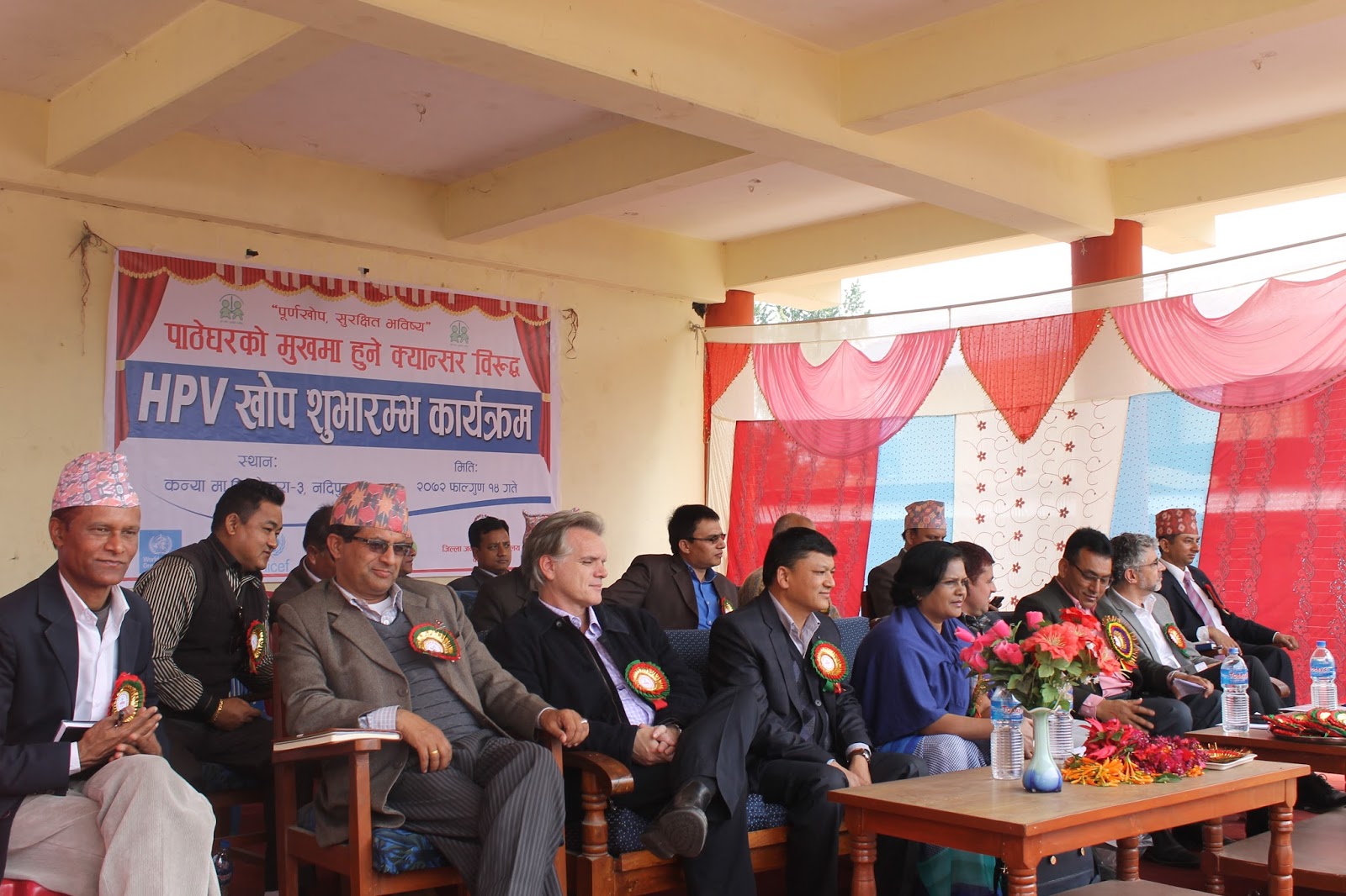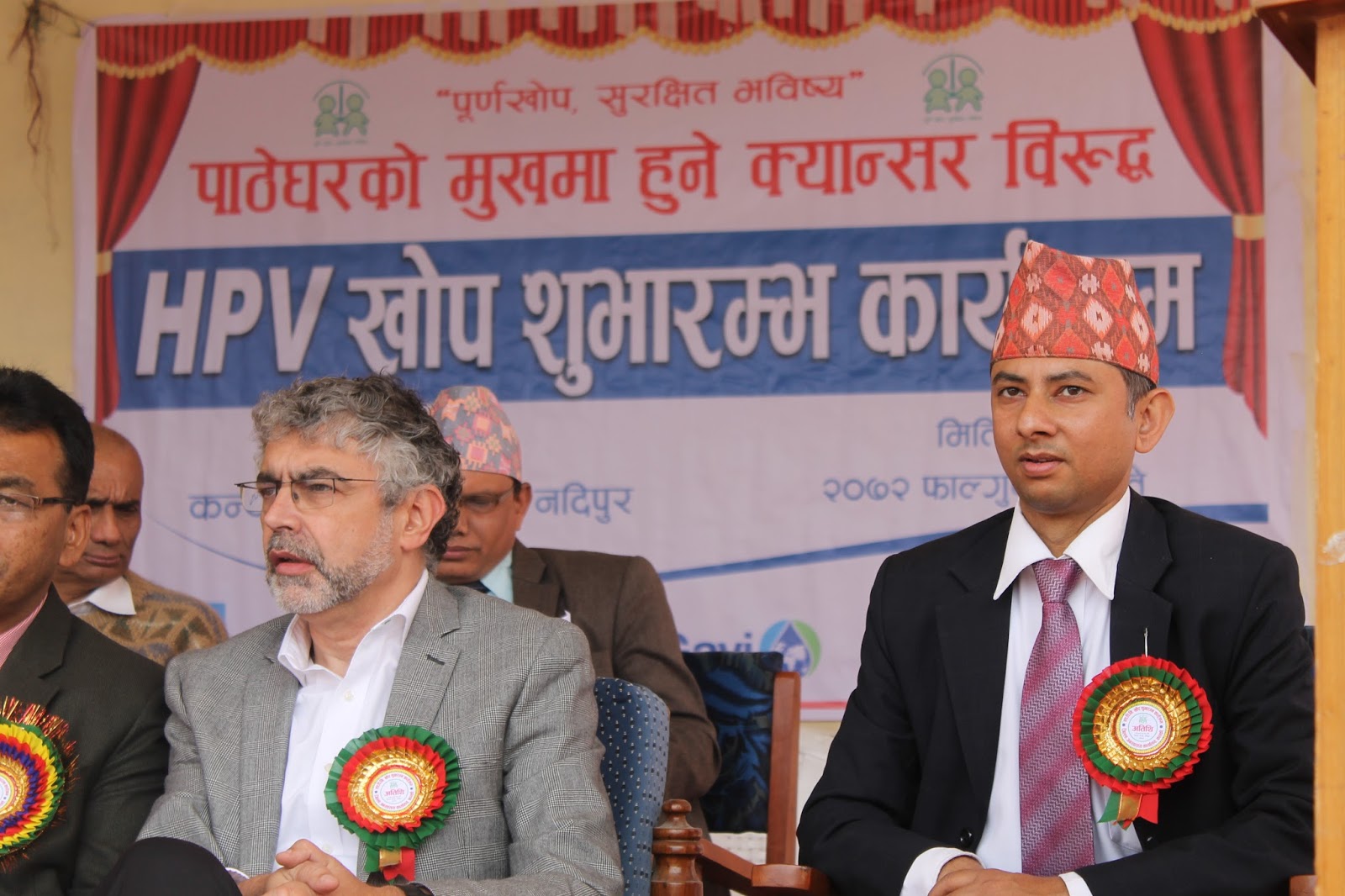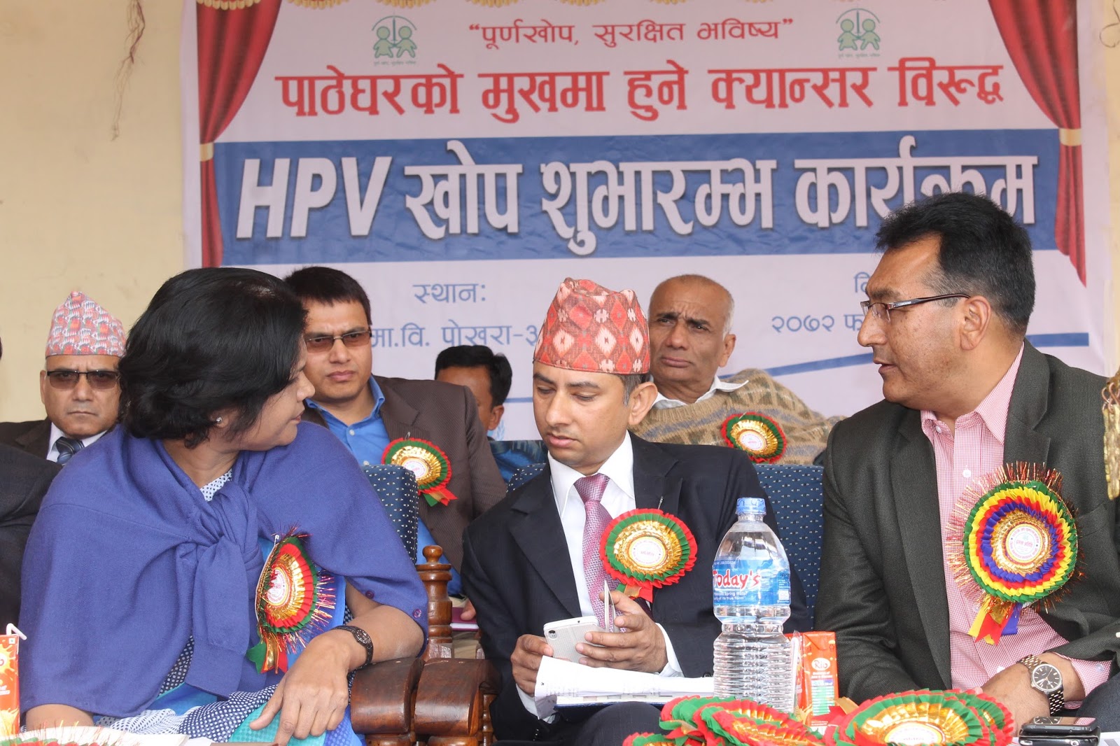 HPV Vaccination program as the latest pilot project (covering Chitwan and Kaski district) to prevent cervical cancer has begun here today from Pokhara, Kaski. This has become possible due to the joint initiative of Child Health Division and Family Health Division under Department of Health Services. Mr. Shanta Bahadur Shrestha, Secretary from MoH formally inaugurated the program today from Kanya Secondary School, Nadipur, Pokhara. Meanwhile, Director General of DoHS Dr. Pushpa Chaudhary handed over the vaccine carrier with HPV vaccine to health worker for starting the campaign. Preshila Paija, 10 year girl studying in class six at the school was the first one to receive first HPV Vaccine in Nepal. This vaccine completes in two doses administered at the interval of six months. The program has targeted to immunize nearly 15,000 school girls studying in Grade VI or non-school girls of age 10 years from Chitwan and Kaski district.